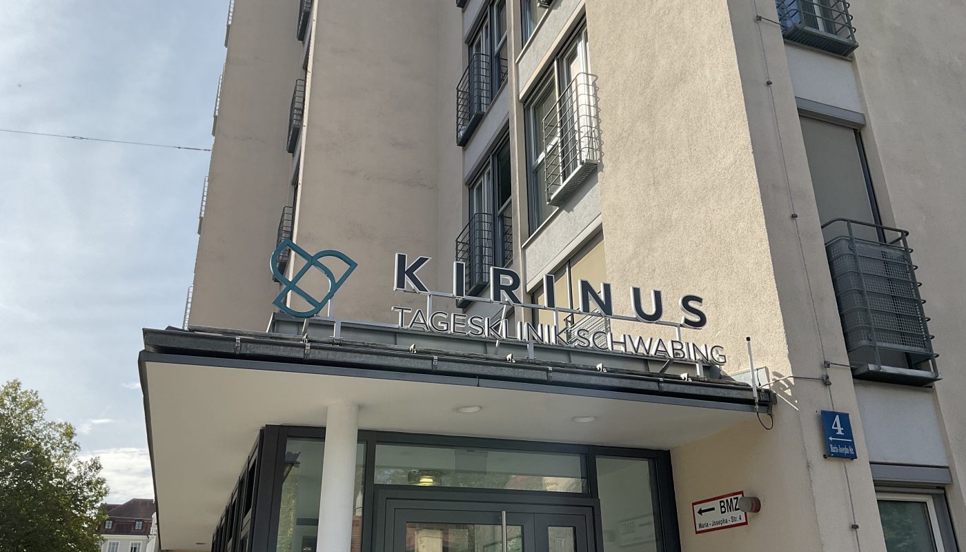 Plitschplatsch nass floh ich unter das Vordach der Kirinus Tagesklinik München Schwabing. Es ist mein zweiter Tag.